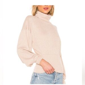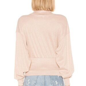 Flattering lightweight turtleneck sweater in a gorgeous rosy/gold beige color called “Glam Metallic Shimmer”. Ballooned sleeves with a wrist band and defined waistband. So flattering!