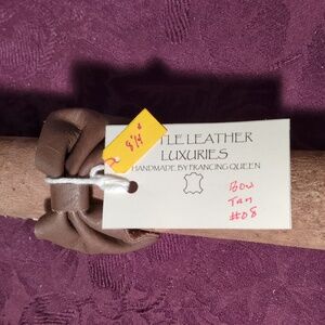 NEW! Handmade Genuine Leather Bow Bracelet #08 Tan Gunmetal