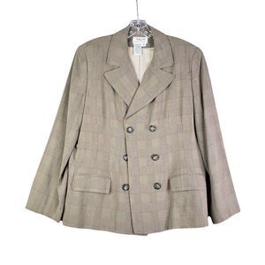 Talbots Vintage Double Breasted Blazer Women's Size 14P Petite Plaid Lined