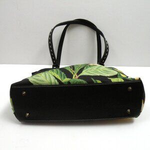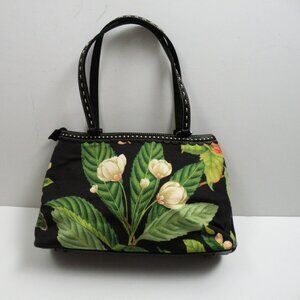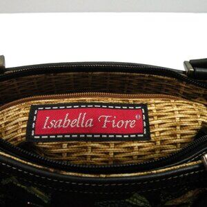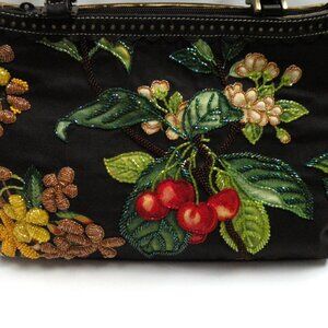 Vintage Isabella Fiore Cherry and Floral Beaded Topstitched Black Leather Bag.