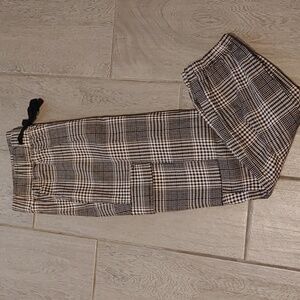 Tinseltown Juniors Size Small Trendy Houndstooth cargo jogger/pant. Features a stylish black and white pattern.