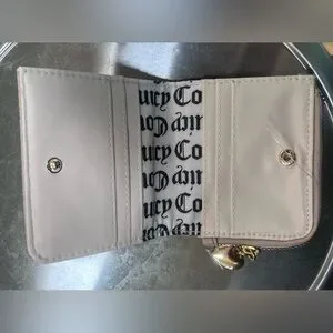 Elegant Juicy Couture wallet with embossed logo design. Features a stylish beige color and secure zip closure.
