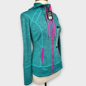 Lukka jacket, women’s activewear, aqua hoodie, athleisure zip-up, gym jacket, workout top, pink zipper hoodie, yoga jacket, running top, NWT