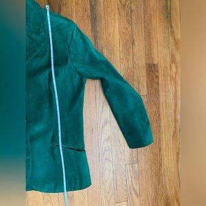 Materials tag is not available but it is genuine suede in the most gorgeous green color.