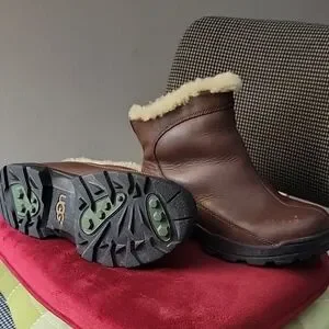 Stylish brown boots with cozy shearling lining. Durable soles for comfort and grip.