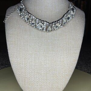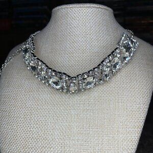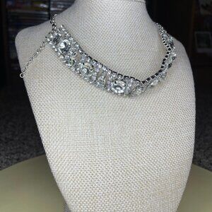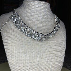 Make an unforgettable statement with this stunning, wide choker necklace. This piece is crafted with a bold, continuous band of brilliant clear rhinestones set in a silver-tone metal. The design alternates between large, prominent square-cut crystals and rectangular stones, all surrounded by smaller accent rhinestones, giving it a luxurious and glamorous vintage or Art Deco feel. It features an adjustable chain and clasp closure, allowing you to customize the fit for maximum impact. This is the perfect accessory for special occasions, formal events, weddings, or any time you want to add "red carpet" sparkle to your look. Key Features: Design: Wide, chunky choker style. Stones: Large square and rectangular-cut clear rhinestones. Metal: Silver-tone setting. Style: Glamorous, Vintage-Inspired, Statement, Formal. Closure: Adjustable chain with a lobster clasp