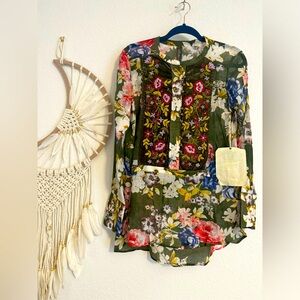 Alice + Olivia Cream Feather Sleeve Crop Top