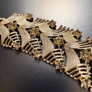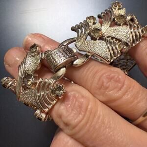 Vintage CORO Pegasus Silvertone Taupe Rhinestone Bracelet