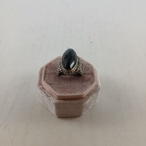 Carolyn Pollack Relios Sterling Silver Ring Size 7 Faceted Onyx Heart Accents