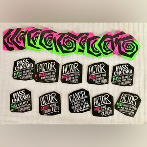 • Sabotage your opponents - use “twist tile” cards to mess with your opponents. Force them to act out their clue with their butt touching the floor, only use one hand to act it out, throw a foam ball for them to dodge, or more!