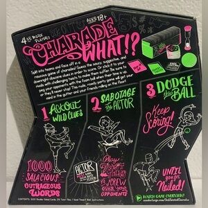 •Charades with a Twist - includes 1,000 salacious and outrageous clues-the worst humanity has to offer-to act out