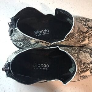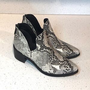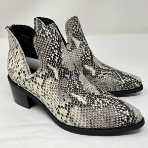 🔴 4/$15 BLONDO Waterproof Black & Gray Snakeskin Ankle Booties size 6.5 in EUC