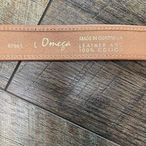 Label: Omega, Made in Guatemala Material: cotton, leather, metal