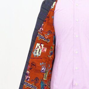ETRO 44L Blue Blazer Sport Coat Jacket 2-Button Check T365