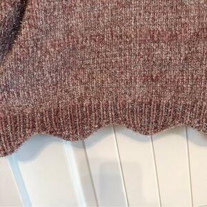 Altar’d State cropped super soft dusty rose silver sparkle chenille sweater size M/L. Scalloped hem, cozy, feminine, ethereal. This piece really glitters in the light! So pretty! Retails new for $79.95