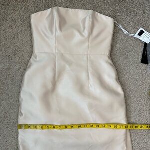 Alfred Sung D876 Strapless Gown Removable Watteau Train Champagne 0