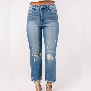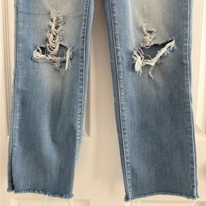 - light wash with distressing throughout