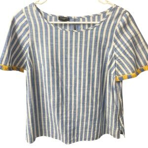 Talbots Petites Blue White Stripe Cotton Top with Yellow Trim – Size SP