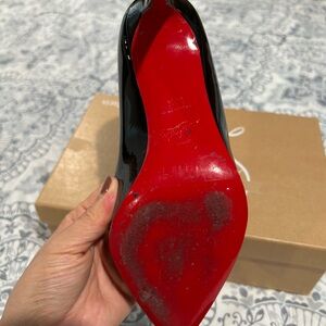 Iconic red soles- a timeless elegant shoe. Please see pictures for signs of wear and tear. 😌 100% authentic.