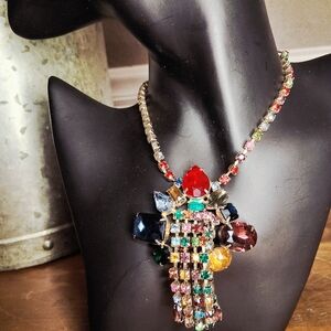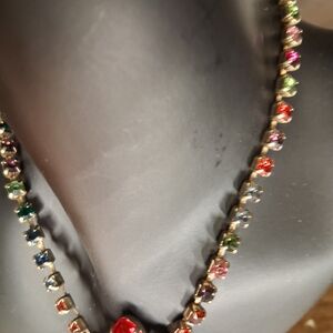 Vintage Art Deco Glass Multi Colored Statement Necklace With Uranium Glass