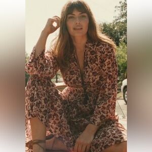 Embrace elegance with this beautiful cream dress featuring a delicate floral print. Perfect for any occasion.