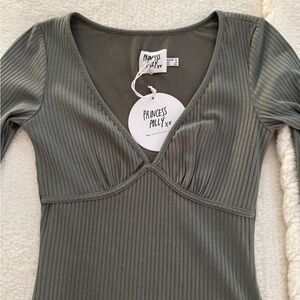 Princess Polly Sage Ribbed Dress