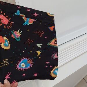 TruthNYC Pants, Size Large Black w/ Various Stylized Hearts, Wide Leg, Pockets