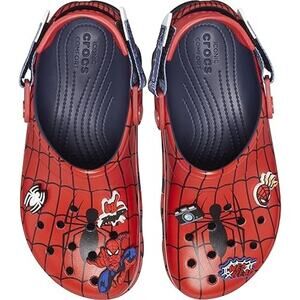 Rugged, lightweight clogs with Spider-Man design. All-terrain outsole for traction, adjustable turbo heel strap for a secure fit, and cushioned Croslite comfort. Water-friendly, easy to clean—great for warm-weather walks, beach days, and everyday wear.