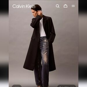 Sleek black overcoat by Calvin Klein. Ideal for a chic ensemble.