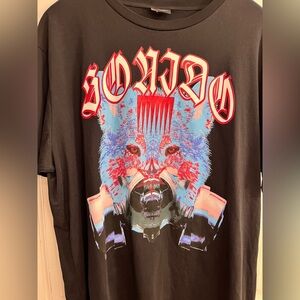 Marcelo Burlon Tomas Wolf-Print T-Shirt, Black/Blue sz XXL