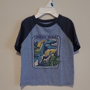 Jurassic World graphic blue t-shirt from Jumping Beans. Size 24 Months. Fabric of body is 65% Polyester and 25% Cotton. Fabric of sleeves are 50% Cotton and 50% Polyester. Machine wash and dry. In excellent used condition. Reasonable offers are welcome. Bundle to save.