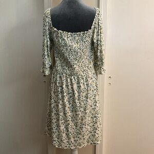 WAYF Yellow White Floral Dress Square Neck Short Sleeve A-Line Size L