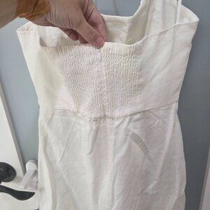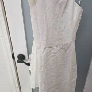 Babaton halter dress, Babaton white mini dress, Babaton linen blend dress, Babaton size 4 dress, Babaton summer dress, white halter mini dress, Babaton vacation dress, Babaton party dress, linen halter dress, minimalist white dress