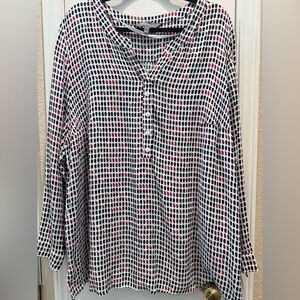 Stylish plaid shirt by Flag & Anthem. Features a mix of blue, brown, and cream colors. This super soft shirt measures 25 inches P2P and 29 inches in length. The fabric content 100% cotton. Questions? Please ask.