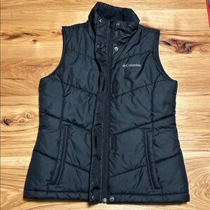 Women’s black puffer vest by Columbia. Two pockets, not zippered. Fleece lined. In great condition, minimally worn.