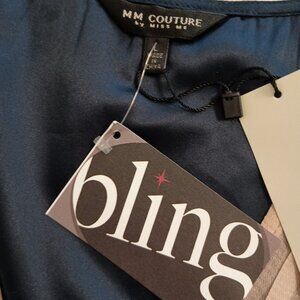 MM Couture, silk dress, V-neck dress, tan and black, cocktail dress, special occasion, NWT, elegant outfit, party dress, evening wear, luxury style, women’s size L, timeless fashion, classy look