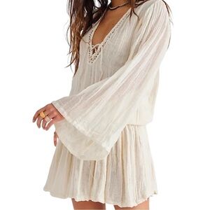 Free People Light Pink Lace Butterfly Balloon Sleeve Crop Top NWT