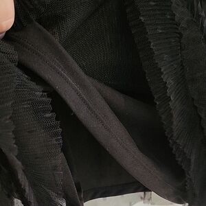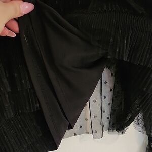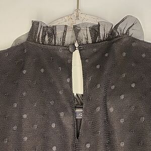 Chic black blouse with sheer polka dot sleeves. Perfect for versatile styling. New without tags. Size xs