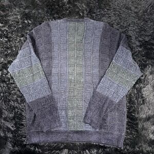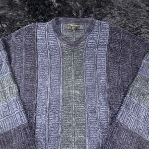 Lorenzo Sweater Mens XL Blue Gray V Neck Wool Blend Colorblock Knit Casual Warm