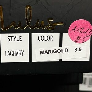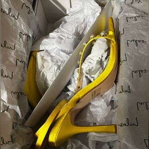 Lulus Women's Satin Pearl Strappy Heeled Sandals Party Marigold Shoes Size 8.5