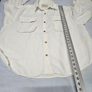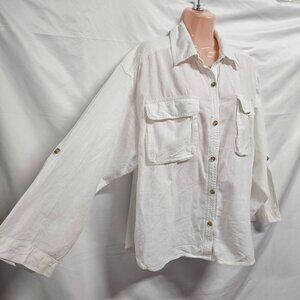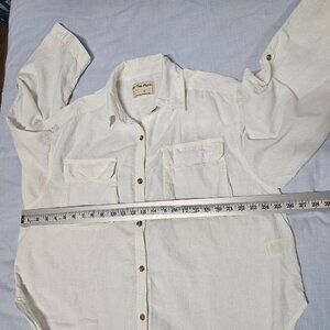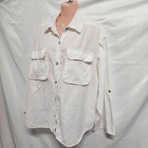 In great preloved condition Effortlessly easy and so essential, this button-down is featured in a soft, cool cotton-linen blend and slouchy silhouette with dropped shoulders and a collared neckline. Long sleeves with roll up tabs for a casual look, There are patch-pockets at chest and a shirttail hem. An absolute wardrobe staple, this shirt can be layered up or down. Pictures for details and measurements to be sure it fits Open to questions and offers
