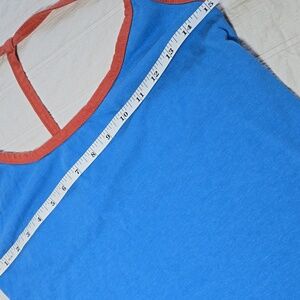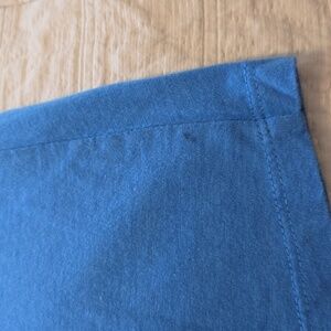 Casual blue maxi dress with striking contrast trim. Ideal for everyday wear. Side Slit on one side. See the last pic for a small pencil eraser size spot near the hem. Otherwise very good condition with very minimal wear. Fabulous swim coverup or easy beach dress.