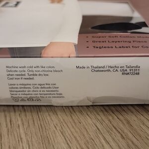 This is a 2-pack of Felina long-sleeve turtlenecks, one white and one black, size large. The turtlenecks are made of a super-soft modal cotton blend and feature a tagless label for comfort. Great layering piece and are suitable for wearing with skirts, jeans, or at home. Collar can fold or scrunch.