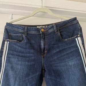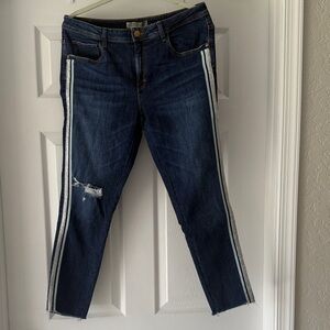 Zara Dark Blue Cropped Jeans with White Side Stripes