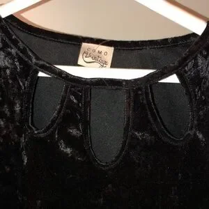 NWT Black Crushed Velvet Top w’ peep hole neckline