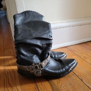 very worn, missing pocket button on wearers right side