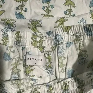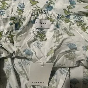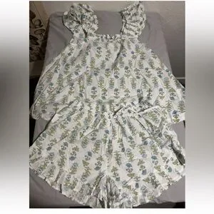Relax in style with this charming floral print pajama set. Featuring a delightful mix of blue and green hues, this set is perfect for a cozy night's sleep.