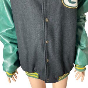 VTG NFL Green Bay Packers Varsity Bomber Jacket Mens Lar Green Black Wool Blend