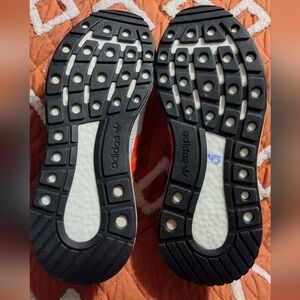 Men's Adidas ZX 500 RM Solar Red genuine leather & suede sneakers. Vibrant sneakers with neon red and light gray tones with a sleek and modern look.