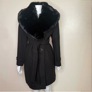 Black removable faux fur on collar belted pea coat